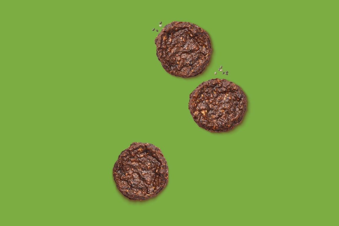 Snack deliziosi per cani, confezionati senza cereali, con manzo di qualità e un tocco di semi di chia e cavolo riccio. Uno spuntino squisito con ingredienti naturali.